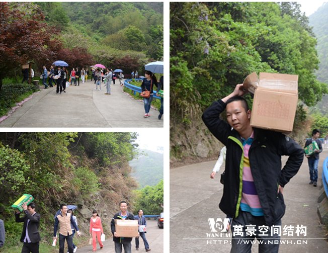 上午8點(diǎn),萬(wàn)豪員工齊聚公司樓下,準(zhǔn)備向四明山出發(fā)了!