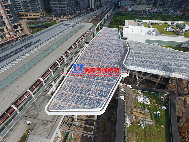 深圳龍華地鐵站ETFE膜結(jié)構(gòu)天幕項(xiàng)目由我公司負(fù)責(zé)設(shè)計(jì)及承建,項(xiàng)目由4個(gè)出入口單體組成,ETFE展開(kāi)面積7800平米,二次鋼結(jié)構(gòu)120噸,結(jié)構(gòu)落柱采用目前最流行的樹(shù)形節(jié)點(diǎn)支撐,在結(jié)構(gòu)安全的同時(shí)更具層次感。同時(shí)該項(xiàng)目也完美突出了ETFE膜材高透光、高自潔性及耐高溫的優(yōu)點(diǎn)。