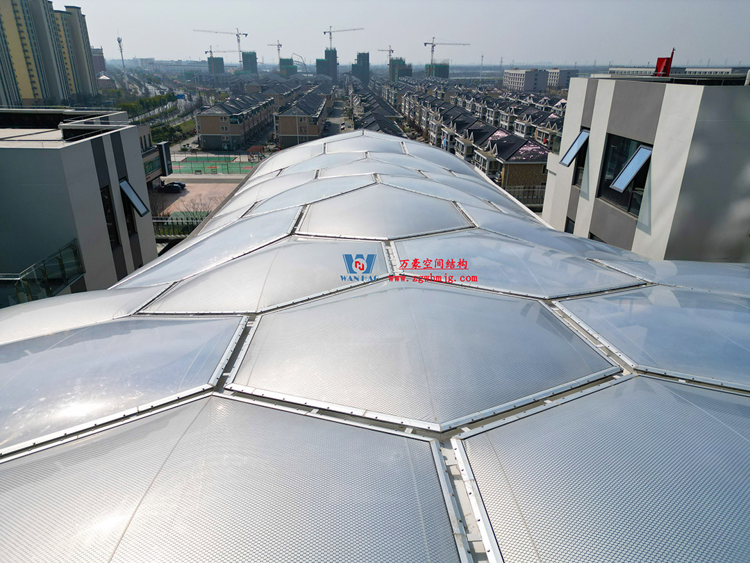 嘉興長安里ETFE氣枕鋼膜結(jié)構(gòu)頂棚工程位于嘉興市長安里街區(qū),該項目總用鋼量約440噸,ETFE膜結(jié)構(gòu)展開面積約3200平米。