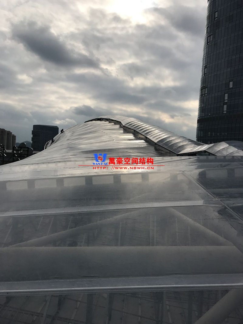 遵義高鐵新城天幕膜結構工程用鋼量500噸,膜展開面積8000平米。