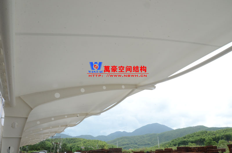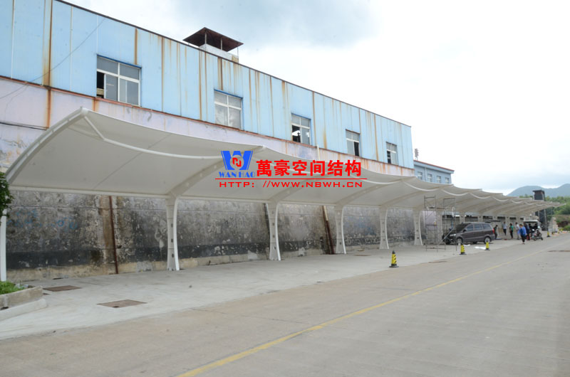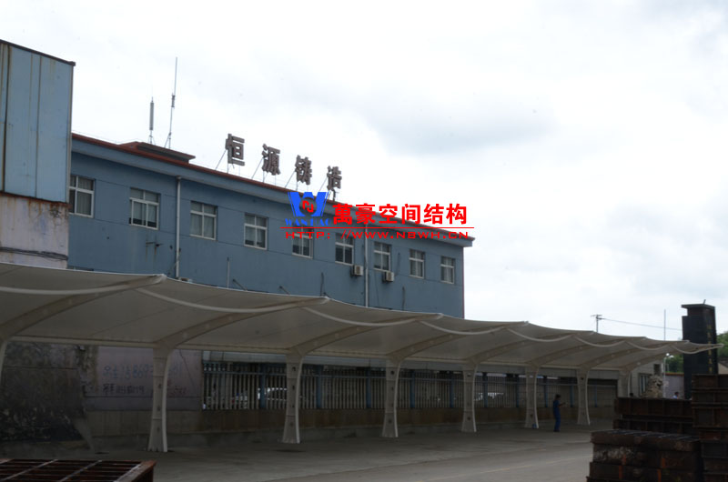 恒源鑄造膜結構車棚項目由寧波萬豪空間結構工程有限公司承建,地址位于浙江省寧波市奉化區莼湖鎮田隴村冒盤線北寧波恒源鑄造有限公司內,該項目用鋼量7噸,膜結構展開面積342平米,共計24個車位。
