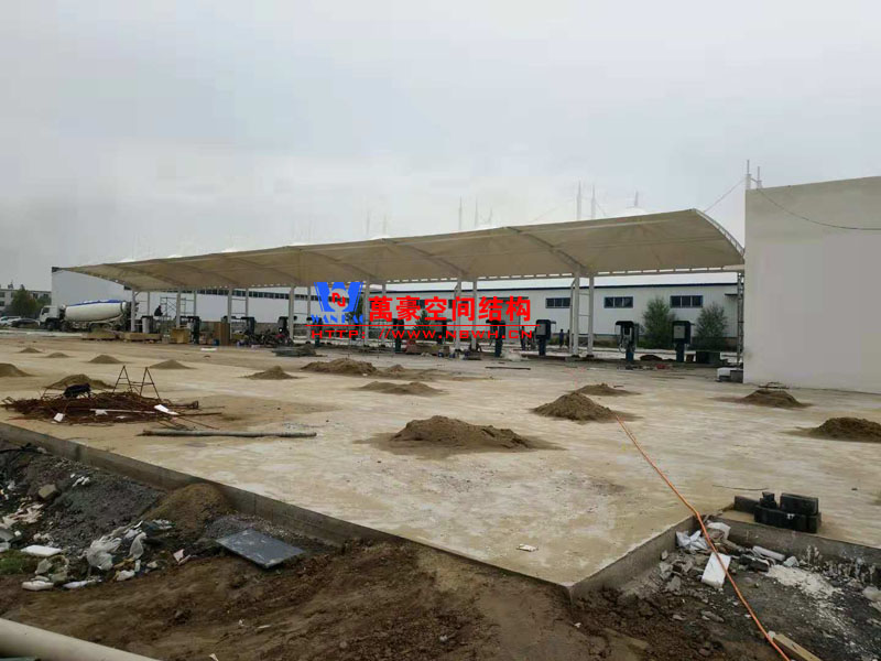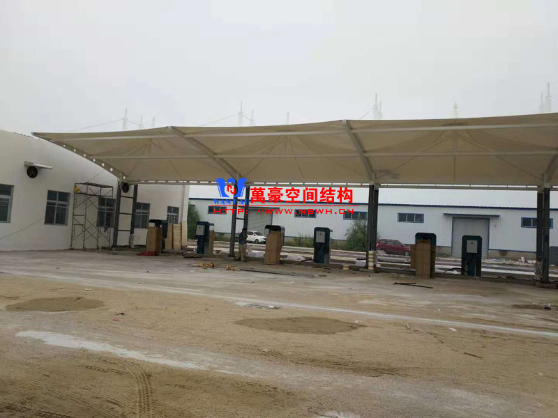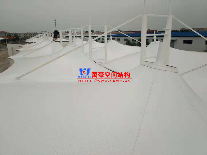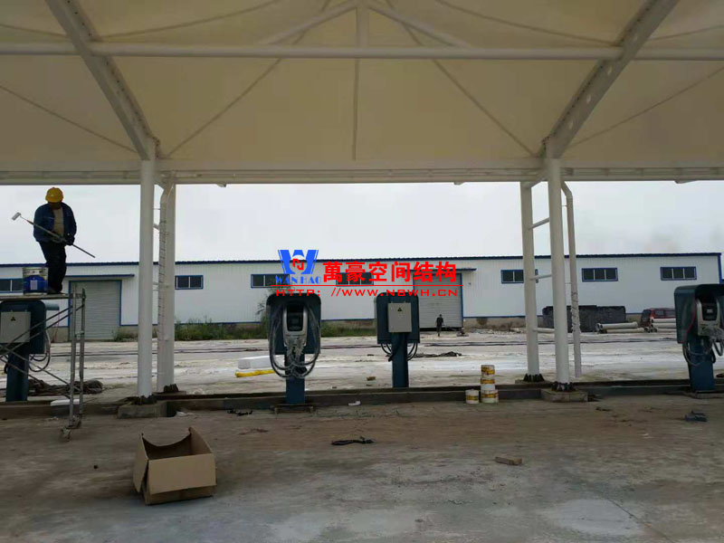 內(nèi)黃縣公交充電樁膜結(jié)構(gòu)車棚工程位于河南省安陽市內(nèi)黃縣龍翔物流公交站內(nèi),由寧波萬豪空間結(jié)構(gòu)工程有限公司承建。本工程使用的是白色pvc膜材,膜結(jié)構(gòu)展開面積2300平米,用鋼量65噸,共計(jì)70個車位。