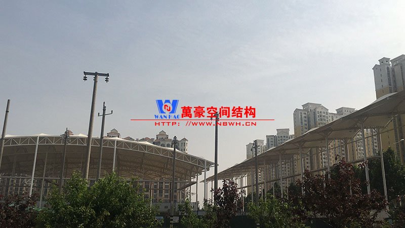 國家電網(wǎng)公司不停電作業(yè)(河南)實訓(xùn)基地膜結(jié)構(gòu)晴雨棚項目,由寧波萬豪空間結(jié)構(gòu)工程有限公司承建。該項目膜結(jié)構(gòu)展開面積9000平米,用鋼量500噸。