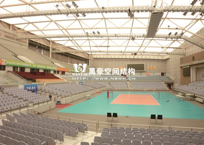 頂層膜結(jié)構(gòu)分內(nèi)外膜,外膜采用PTFE材料,水平投影面積約15000平方米,局部采用PVC內(nèi)膜,覆蓋在比賽場地及觀眾席上方,工程整體結(jié)構(gòu)造型美觀新穎,與周圍環(huán)境相融洽。為寧波市獨具景觀特色的標(biāo)志性建筑。