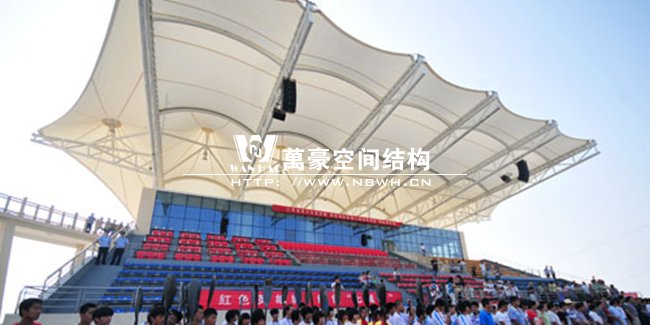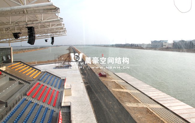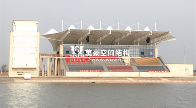 南昌瑤湖國際水上運(yùn)動(dòng)中心膜結(jié)構(gòu)看臺整體工程呈骨架式單挑懸臂梁結(jié)構(gòu),縱向跨度達(dá)到20米,總長度約52米,每檔間距為8.5米,充分體了膜結(jié)構(gòu)具有大跨度,易施工的結(jié)構(gòu)特點(diǎn),同時(shí)它的經(jīng)濟(jì)實(shí)用性和視覺美觀性也得到了完美的體現(xiàn)。