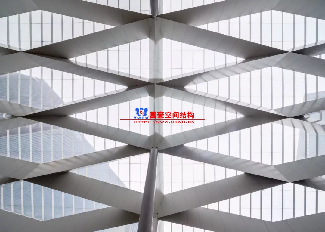 結構梁被包裝為三角形,網(wǎng)格線角硬朗
