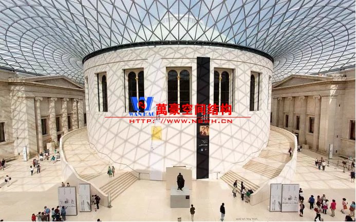 英國博物館為了解決內(nèi)部缺乏空間、缺乏通道、中心圖書館利用率低的問題,啟動了大庭院加建天幕的改造項目,由福斯特事務所負責設計,其設計構想是新與舊共生。