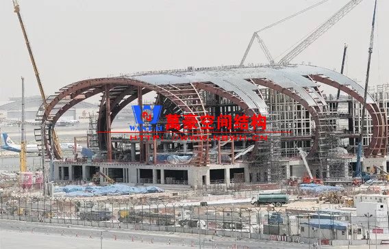 除了以上相對比較常見的結(jié)構(gòu)類型,還有一些是不太常見的樣式,且基本上只此一例別無他家。如丹佛機場則采用了膜結(jié)構(gòu),潔白的膜層層疊疊與遠處的雪山交相呼應(yīng),建筑效果很特別。那為何很少有機場大范圍采用膜結(jié)構(gòu)呢?可能和膜結(jié)構(gòu)的熱工性能和使用年限有關(guān)系,夏熱冬冷不節(jié)能。同時膜結(jié)構(gòu)對形態(tài)的適應(yīng)性比較差,需要特定的建筑樣式才能遷就膜結(jié)構(gòu),而不像鋼結(jié)構(gòu)基本能適應(yīng)任何建筑造型。因此建筑師如果想選擇膜結(jié)構(gòu),需要和結(jié)構(gòu)工程師在早期有更多的溝通。