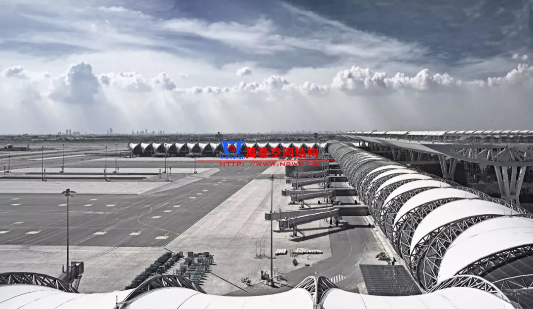 隨著經(jīng)濟條件的提升和建造技術(shù)的進步,建筑師開始追求大跨度與建筑表現(xiàn),因此鋼結(jié)構(gòu)成為了指廊屋面的首選材料。對于二三十米的跨度,三根柱或兩根柱都可以實現(xiàn)。