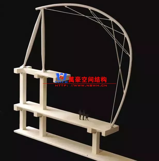 有時建筑中部需要布置長條形天窗,結(jié)構(gòu)跨中梁構(gòu)件會外露,因此梁跨中截面需要盡量小。但是對于簡支梁跨中彎矩確是最大的,這時應(yīng)該如何解決呢?通過將兩側(cè)的幕墻立柱設(shè)置為拉桿并施加預(yù)應(yīng)力,有效減小了跨中的彎矩,柱頂部分彎矩加大可增大截面高度,這樣鋼梁整體造型就與建筑要求相符了。