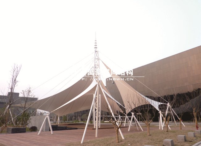 景觀膜結構工程能提供豐富多彩的用途,并與園林景觀溶為一體。創造出讓人們盡情享受的快樂空間。充分展示了結構構件清晰受力的藝術之美,它巧妙的整合周圍的環境,給人們一種高貴典雅、浪漫溫馨之感。另外由于膜材料本身特有的顯色性,在夜間彩燈的映射下能形成絢麗繽紛的景觀。不僅為人們提供遮陽避雨的空間。同時,更由于這種生動活潑的造型能給人們帶來時尚、輕松的休閑感受,所以廣受歡迎。利用膜結構的輕巧,別致的造型建造各種半封閉,全封閉的不行空間,使其形成全天候的建筑空間,提供防風雨,防日曬等人工環境,并有較好的廣告標識效果,因此是步行街改造和新建的絕佳選擇。