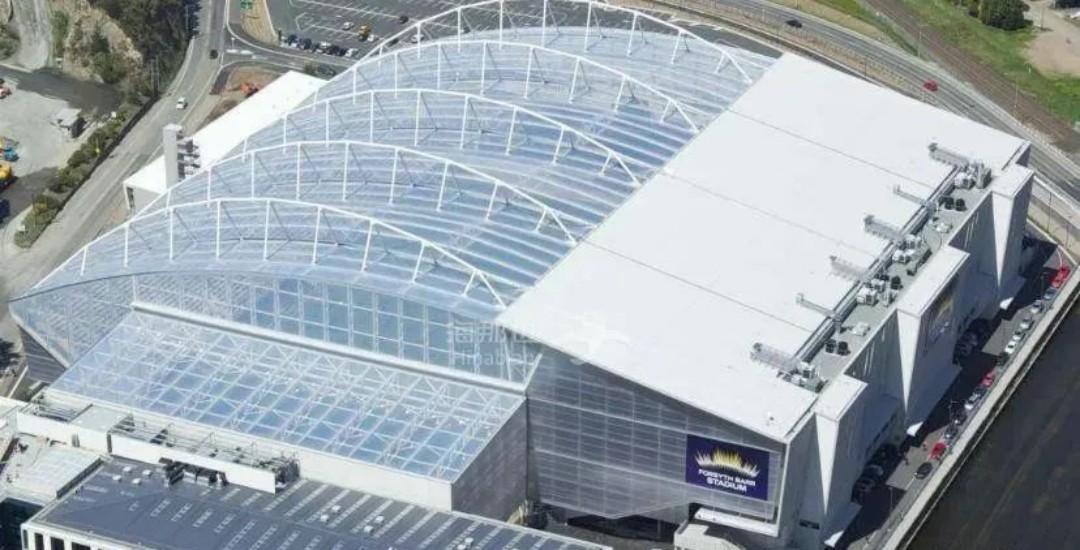 迄今為止,福賽斯·巴爾體育場仍是世界上擁有天然草皮的永久封閉式體育場。其屋頂由5個鋼桁架支撐,每個桁架跨度為105米,能夠承受一輛汽車的重量,主桁架(南看臺)長130米,重390噸。整個屋頂還覆蓋了2.05萬平方米的ETFE材料。雖然ETFE并不是一種新產品,這種材料曾用于英國康沃爾郡(Cornwall)的伊甸園植物園(Eden Project)和中國北京的國家游泳中心“水立方”,但這是首次將其紫外線半透明特性在體育場中進行應用,并創造了南半球大型的ETFE覆蓋結構。達尼丁的氣候寒冷潮濕,為鼓勵觀眾來此參加現場活動,這座屋頂也成為了體育場的重要特征——由于其外形酷似園藝溫室,這座全覆蓋的體育場被昵稱為“玻璃屋”(The Glasshouse)。