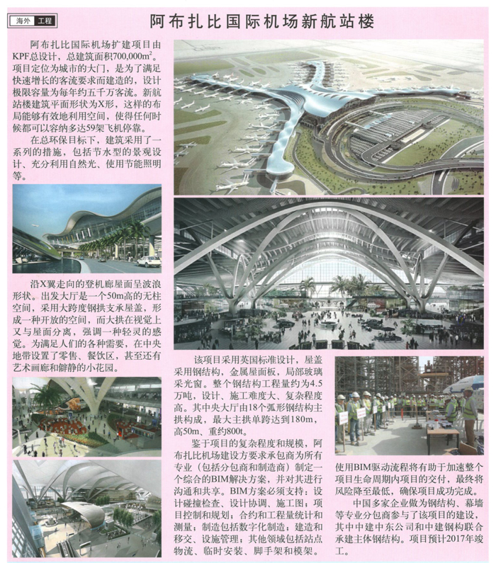 中國多家企業(yè)做為鋼結(jié)構(gòu)、幕墻等專業(yè)分包商參與了該項目的建設(shè),項目預(yù)計2017年竣工。