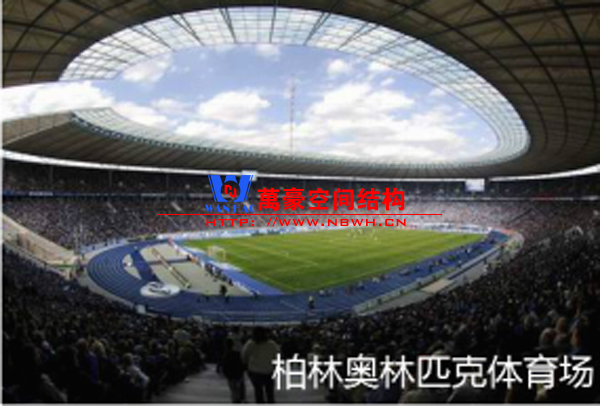 柏林奧林匹克體育場中屋頂設計屬于絕對高水平的設計,懸挑的鋼結構和張拉膜的使用,使頂棚顯得尤為輕質。