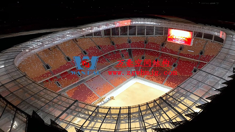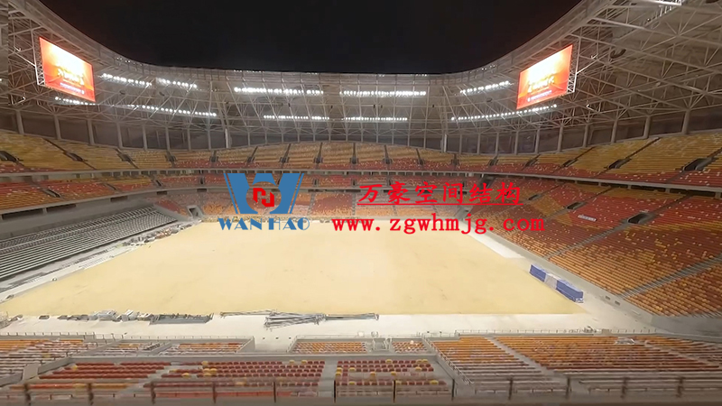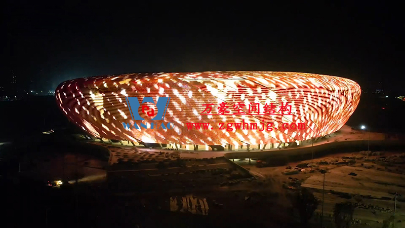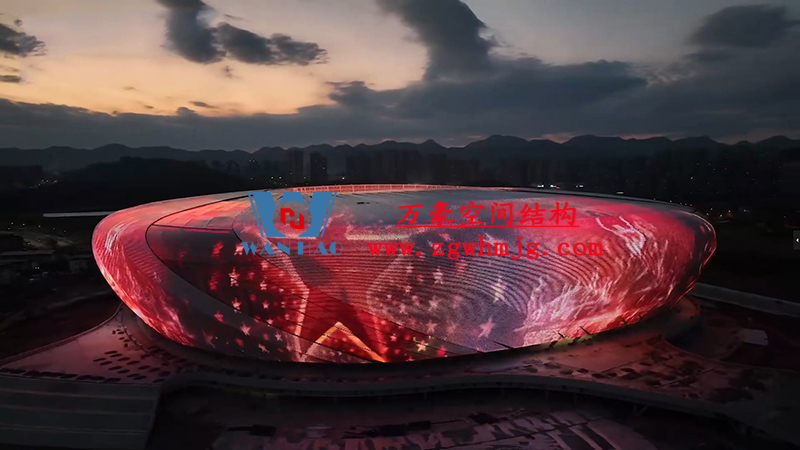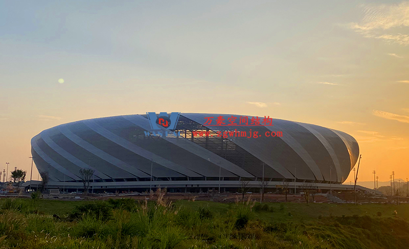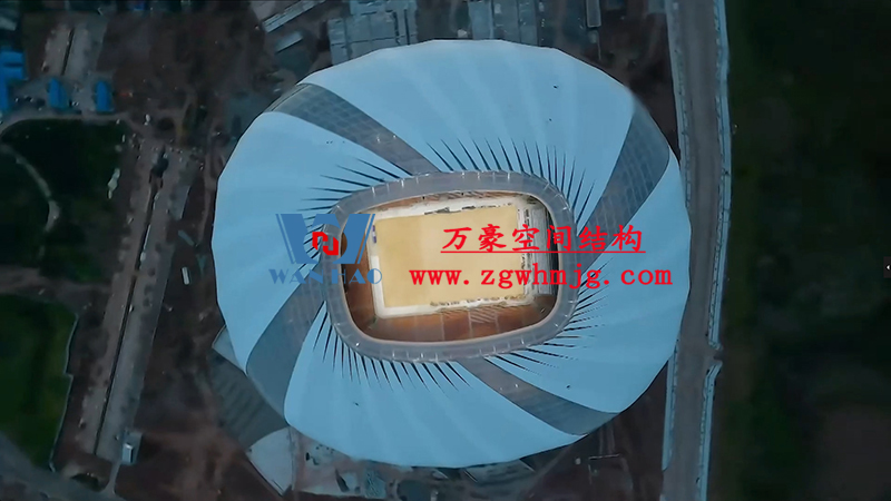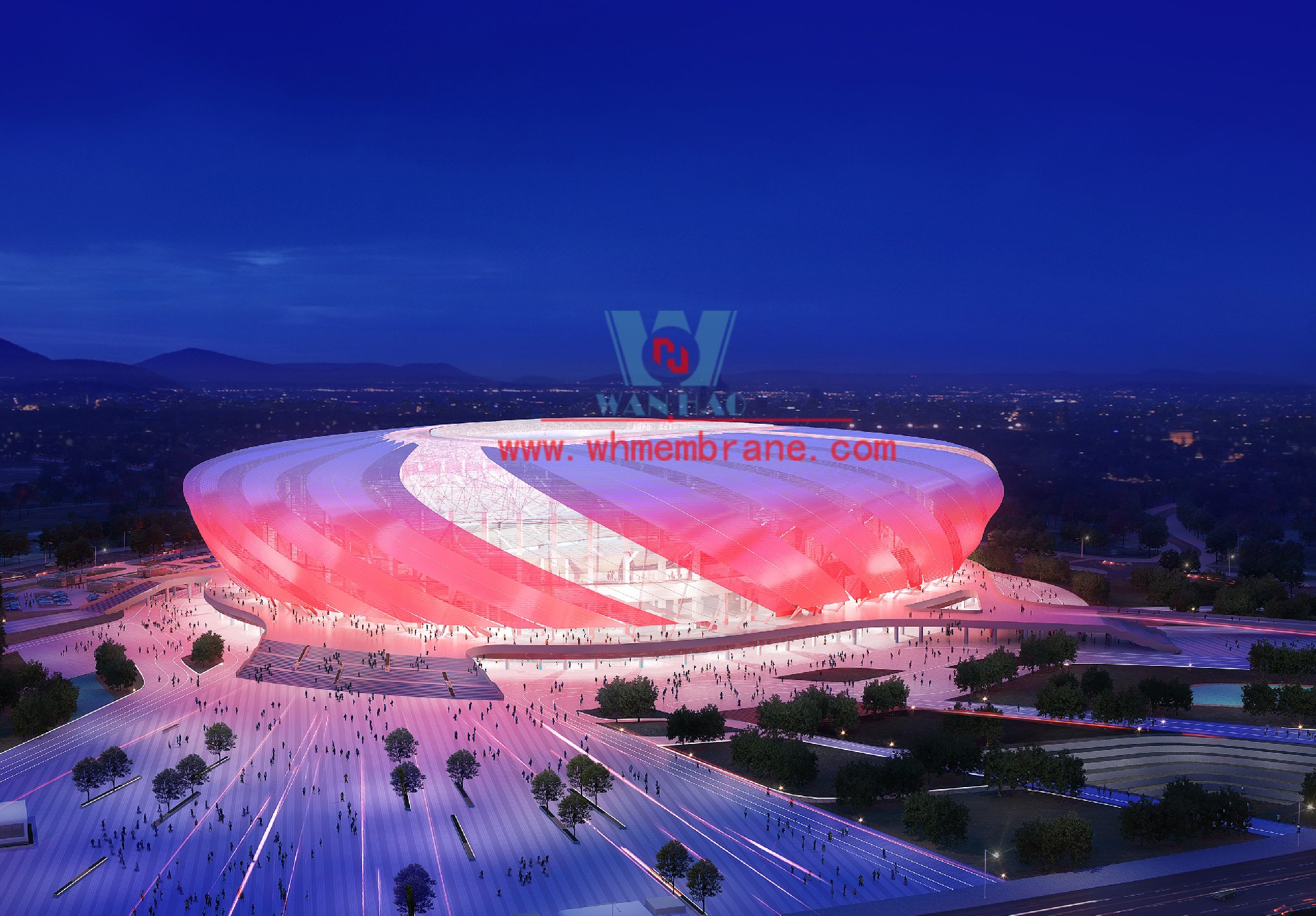 重慶龍興足球場項(xiàng)目位于重慶市兩江新區(qū),占地面積約303畝,總建筑面積約17萬平方米。足球場鋼屋蓋平面呈橢圓形,南北投影長283米、東西寬252米,屋面最大高度59.5米。該項(xiàng)目部分屋面材料選用進(jìn)口高自潔ETFE膜材, 膜結(jié)構(gòu)展開面積合計(jì)30000平米。