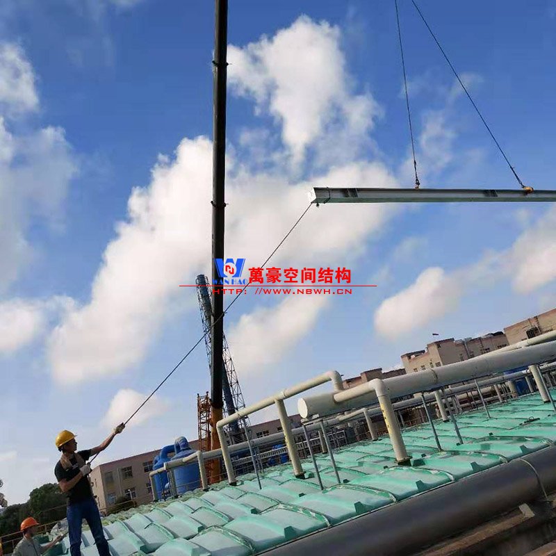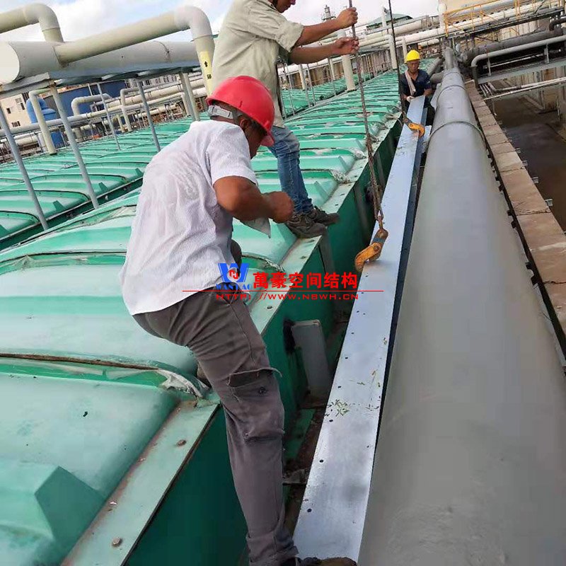 浙江東邦藥業(yè)有限公司污水池(好氧池)加蓋密閉膜結(jié)構(gòu)工程位于浙江省臺州市臨海市東邦藥業(yè)有限公司內(nèi),此工程用鋼量50噸,膜結(jié)構(gòu)展開面積2500平米,由寧波萬豪空間結(jié)構(gòu)工程有限公司承建。