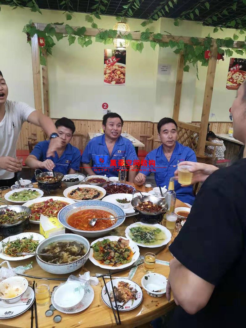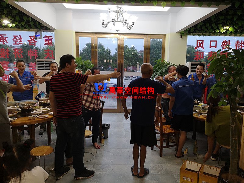 中秋節(jié)假期馬上就要過去了,想必大家都玩的挺開心吧。不知道你們的中秋是怎么過的,是與家人團聚,還是與朋友歡聚呢?萬豪膜結(jié)構(gòu)就不一樣了,我們是整個工廠員工歡聚一堂,共進(jìn)晚餐,喜迎中秋。 雖然來自五湖四海,相聚在萬豪,大家就是一家人,我們會為了我們的共同目標(biāo)一起前進(jìn)。