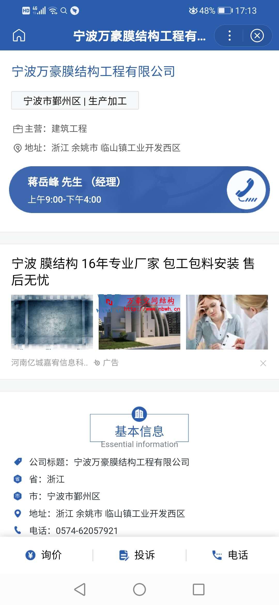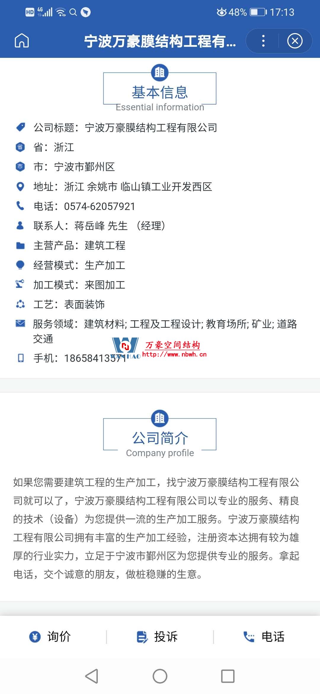 以下名為寧波萬豪膜結(jié)構(gòu)工程有限公司的相關(guān)信息,與本公司無任何關(guān)系。