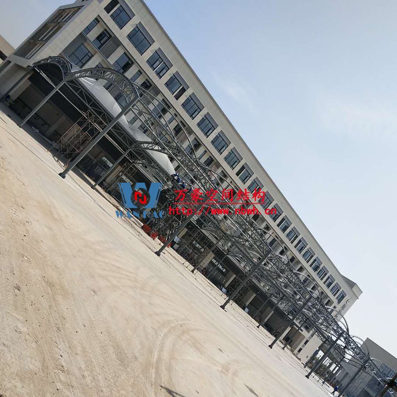 奉化方橋農(nóng)副鋼結(jié)構(gòu)雨棚工程位于浙江省寧波市奉化市內(nèi),此工程用鋼量100噸,膜結(jié)構(gòu)展開面積3500平米,由寧波萬豪空間結(jié)構(gòu)工程有限公司承建。