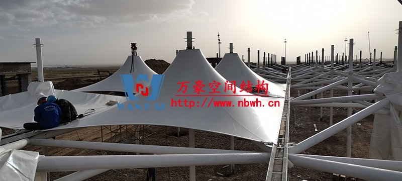 烏蘭縣茶卡景區旅游扶貧基礎設施項目(二期)膜結構工程位于青海省海西蒙古族藏族自治州烏蘭縣茶卡景區,工程用鋼量200噸,膜結構展開面積6000平米。 本工程分為東西兩個區域(A1區、A2區)和不規則區域B區,共計占地4709.2平方米。 目前A1區鋼結構主體施工完成,A2區鋼結構柱施工完成,鋼梁、水槽、斜撐正在施工,膜結構開始安裝。 期待整個工程的完工,來領略它別致的風采。