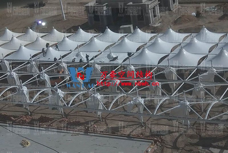 烏蘭縣茶卡景區旅游扶貧基礎設施項目(二期)膜結構工程位于青海省海西蒙古族藏族自治州烏蘭縣茶卡景區,工程用鋼量200噸,膜結構展開面積6000平米。 本工程分為東西兩個區域(A1區、A2區)和不規則區域B區,共計占地4709.2平方米。 目前A1區鋼膜結構已全部安裝完成,A2區鋼結構安裝完成,膜結構正在安裝中。 期待整個工程的完工,來領略它獨特的風采。