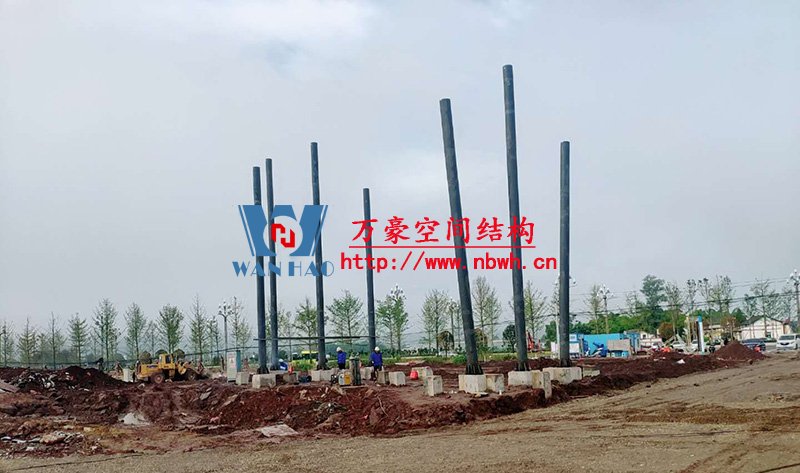 目前立柱安裝完畢,準備進行下一步施工。 期待整個工程的完工,來領略它別致的風采。