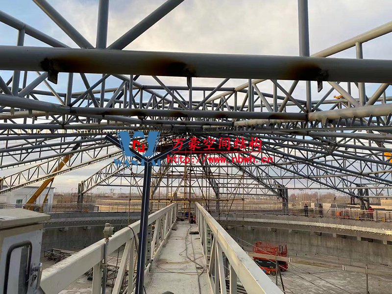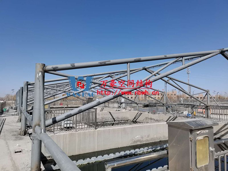 該工程主要建設(shè)格爾木工業(yè)園昆侖工業(yè)區(qū)工業(yè)污水處理廠首期2.5萬(wàn)立方米/天工程二沉池、水解酸化池和預(yù)沉池池體保溫膜結(jié)構(gòu)安裝。項(xiàng)目用鋼量230噸,膜結(jié)構(gòu)展開(kāi)面積5000平米。