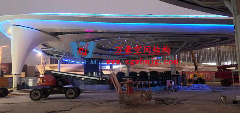 張家港高鐵站前蝴蝶造型天幕工程雙曲面空間鋼結構結合膜結構結合幕墻結合燈光呈現出來現代建筑工藝多元化組合化。