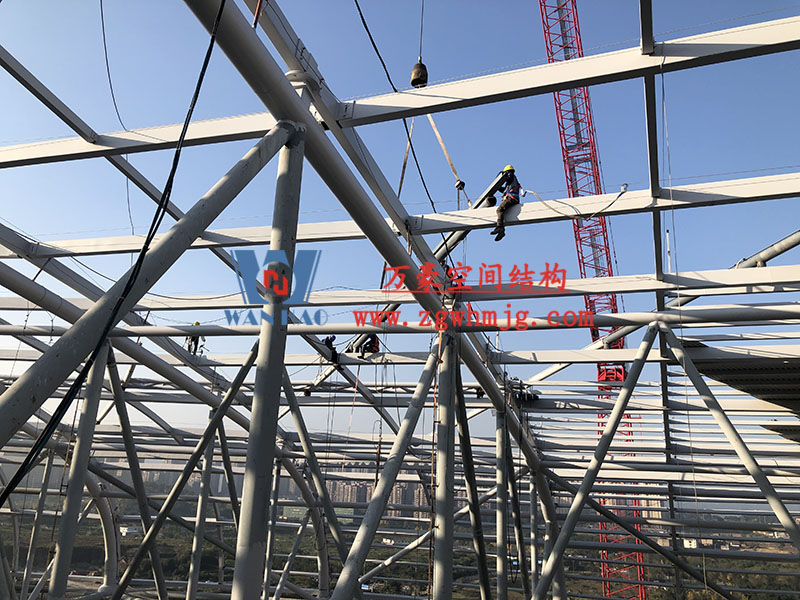 目前,項目內環鋼結構全部完成,屋面鋼結構全部完成,立面鋼結構完成60%,屋面膜結構完成90%,內環膜結構完成25%。