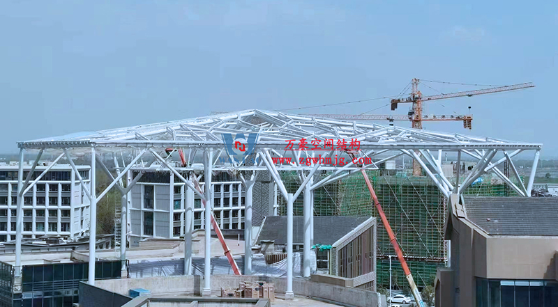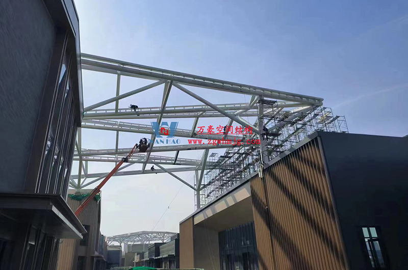 文一塘溪津門天幕鋼結(jié)構(gòu)及ETFE氣枕膜工程由寧波萬豪空間結(jié)構(gòu)工程有限公司承建,該項(xiàng)目用鋼量900噸,膜結(jié)構(gòu)展開面積7000平米。今年以來,萬豪施工團(tuán)隊緊抓時間節(jié)點(diǎn),工程進(jìn)度推進(jìn)迅速。