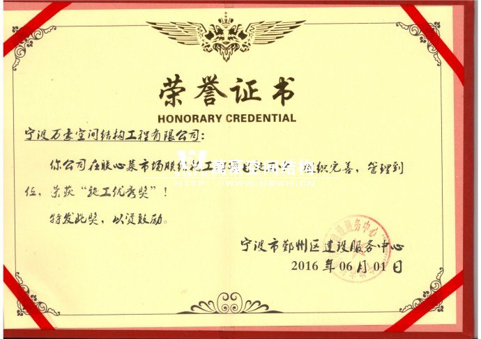 聯心菜市場膜結構工程項目榮獲“施工優秀獎”