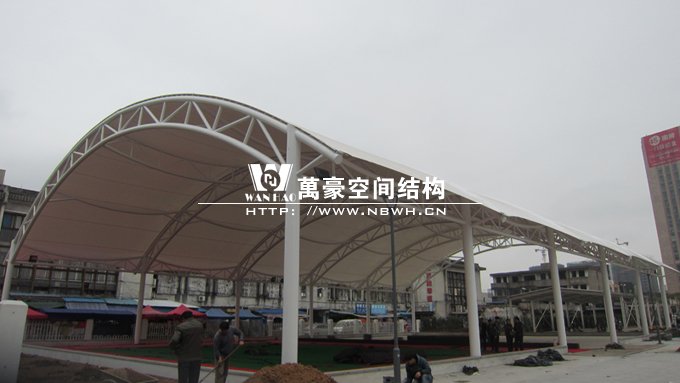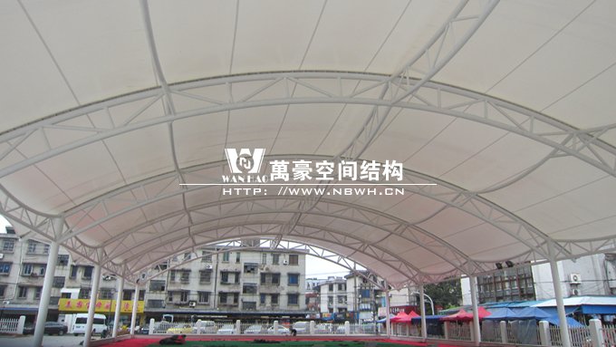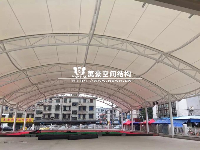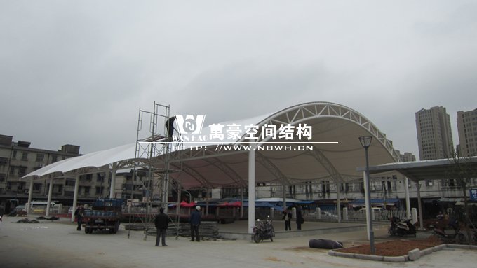 本工程位于寧波市鎮海區駱駝街道,使用膜結構能讓場所有更大的跨度,同時比傳統的建筑更加美觀,相信會為當地的居民帶來更加便利的生活。