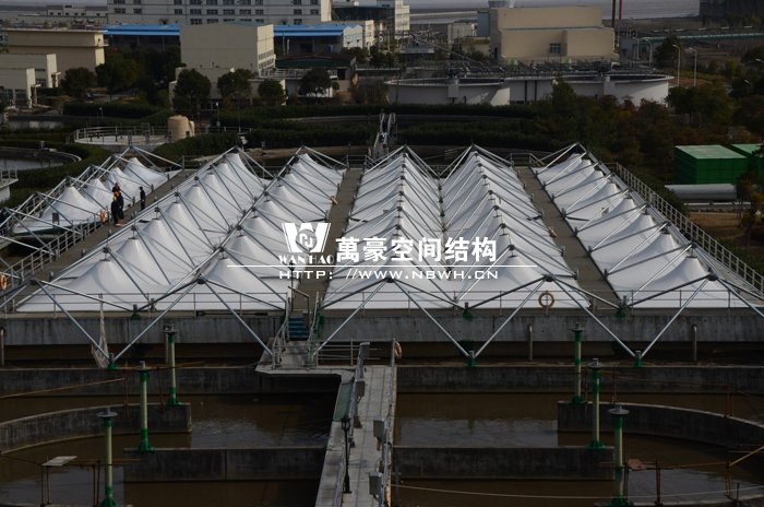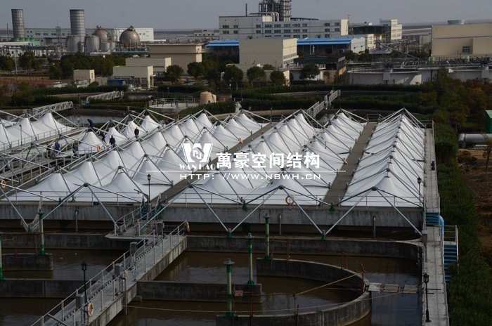 寧波北區污水處理廠廠址位于鎮海新泓口甬舟高速與化工區主干道交叉口附近,污水廠一期建設用地15.48公頃,膜結構加蓋面積達一萬多平方米。